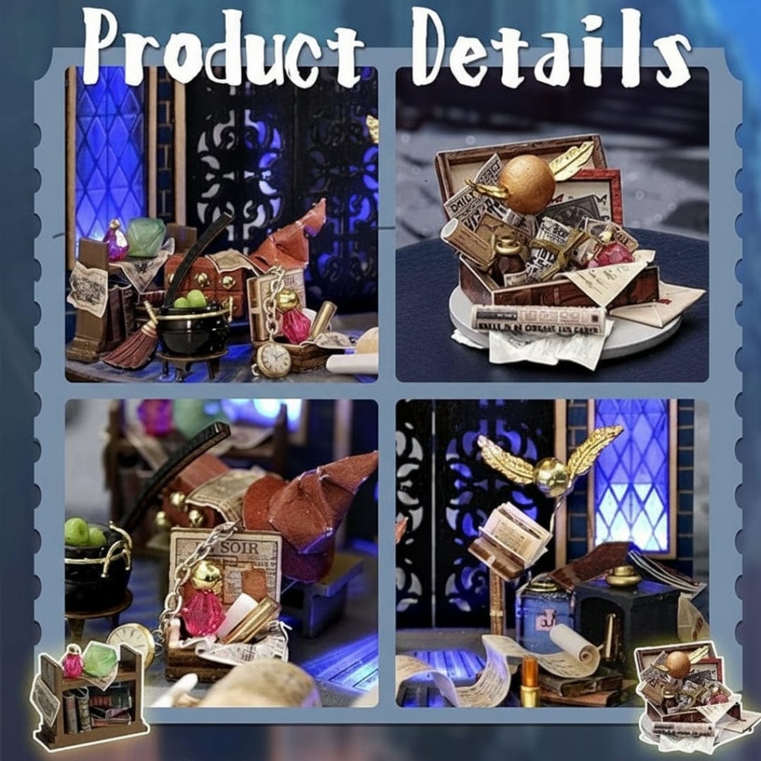 Votre Book Nook Magic Door, inspiré de l’univers Harry Potter, comprend environ 100 pièces miniatures en bois prédécoupé, papier imprimé et plastique, conçues pour recréer une porte magique pleine de mystère. Le kit inclut également un manuel d’instructions illustré en anglais pour vous accompagner étape par étape durant le montage.